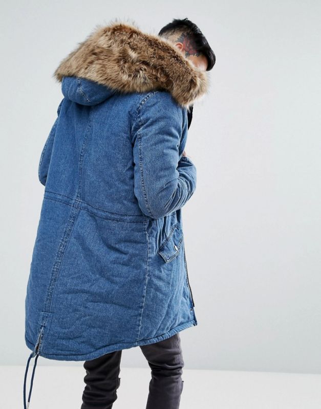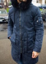 - Дънки. Предимно денимът се използва за създаване на паркове извън сезона. Младите и активни представители на силния пол предпочитат да ги носят. Дънковите паркове често са украсени с изкуствена кожа или овча кожа. Ръкавите и качулката са допълнени от дебела и дълга козина.