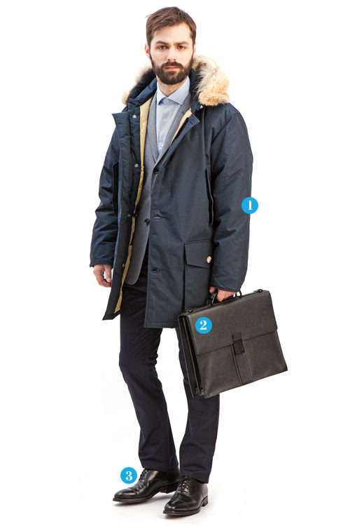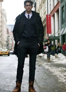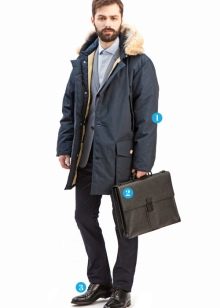 Оригиналният декор на парка изисква комплектът дрехи отдолу да не е по -нисък във възприятието. С прости думи, не бива да носите скъпо кожено яке с обикновен анцуг и още повече да отидете на бизнес среща или среща като тази... Класически костюм с риза ще изглежда много интересен под парка с кожи. По този начин мъжът може да отиде на работа, на посещение и на социално събитие.