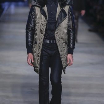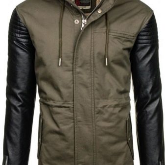 Модели извън сезона паркове за мъже се различават от зимните опции по наличието на тънка изолация. Основата за леките модели са памук и смесен текстил, обработен с водоотблъскваща импрегнация. Когато навън не е много студено, можете да носите съкратено яке. Първо, изглежда впечатляващо. Второ, в него е топло, уютно и удобно. Но най -важното е, че дори когато настъпи студен вятър, човек няма да замръзне. Парки от кожа или велур изглеждат много интересни. Въпреки факта, че демисезонното облекло не предполага наличието на кожи, дизайнерите не отказват да използват тази декоративна вложка.