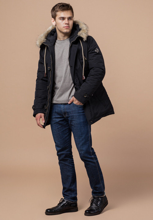 - Черният цвят на парка е универсален. Такива модели са подходящи за всяка ситуация. Класическата кройка е идеална както за ежедневни дънки, така и за бизнес гардероб.