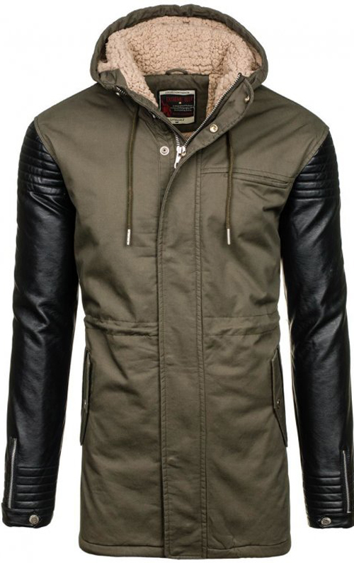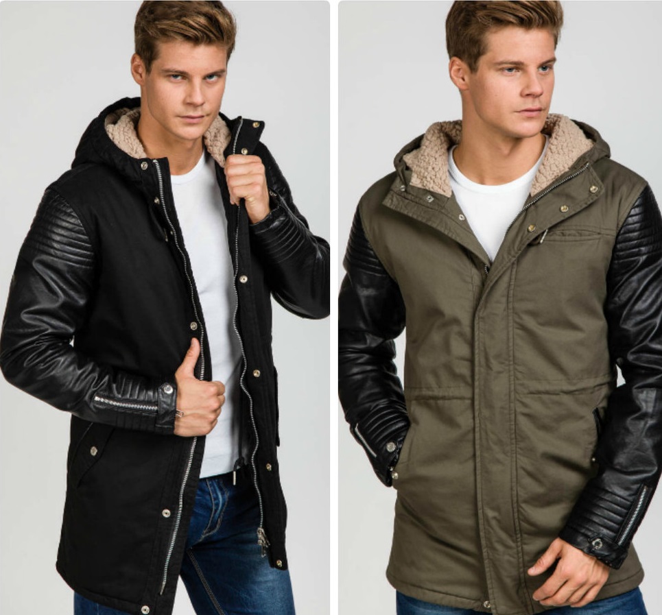 - Парки с кожена яка в маслинено, зелено, черешово, оранжево или червено са идеални за млади мъже под 25 години.