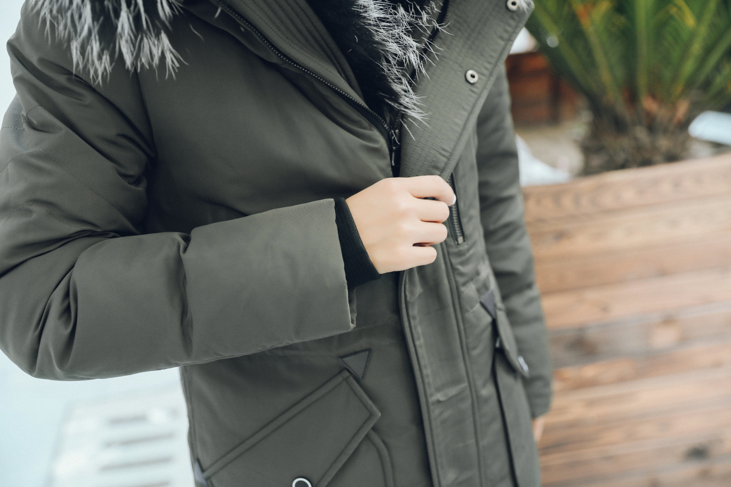 - Качулка на парка трябва да бъдат здраво закрепени към якето с помощта на специални нитове или велкро. Деколтето трябва да е високо, да стига до брадичката, като по този начин затваря врата.