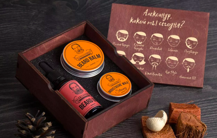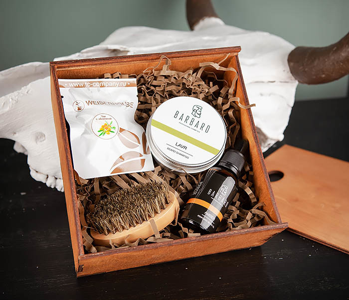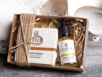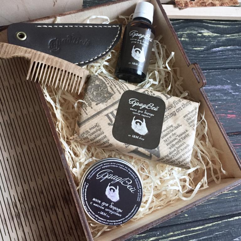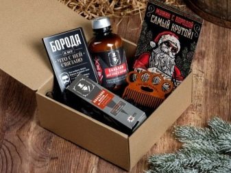 - Si un ensemble pour un cadeau est sélectionné, il est conseillé d'examiner les options avec un grand nombre de composants, ainsi que dans un bel emballage. Les fabricants modernes produisent de nombreux ensembles originaux dans des boîtes attrayantes (non seulement en carton, mais aussi en bois), des étuis en cuir et d'autres contenants inhabituels. Un cadeau dans un tel emballage égayera sûrement le barbu à qui vous le présentez.