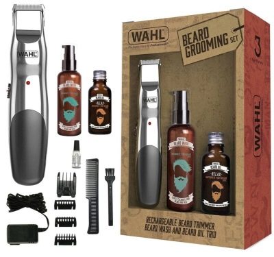 - Wahl. Le fabricant américain produit de nombreux kits intéressants et de haute qualité avec des compositions et des accessoires pour le soin et le coiffage des barbes et des moustaches. Ainsi, le Wahl Beard Care Kit sera très utile pour les hommes qui souhaitent avoir un kit de coiffage de moyens efficaces dans leur arsenal. Il comprend des articles tels qu'une tondeuse à barbe rechargeable, un peigne à barbe avec un manche en bois, 10 ml d'huile et un étui de voyage spécial dans lequel vous pouvez ranger tous les articles énumérés.