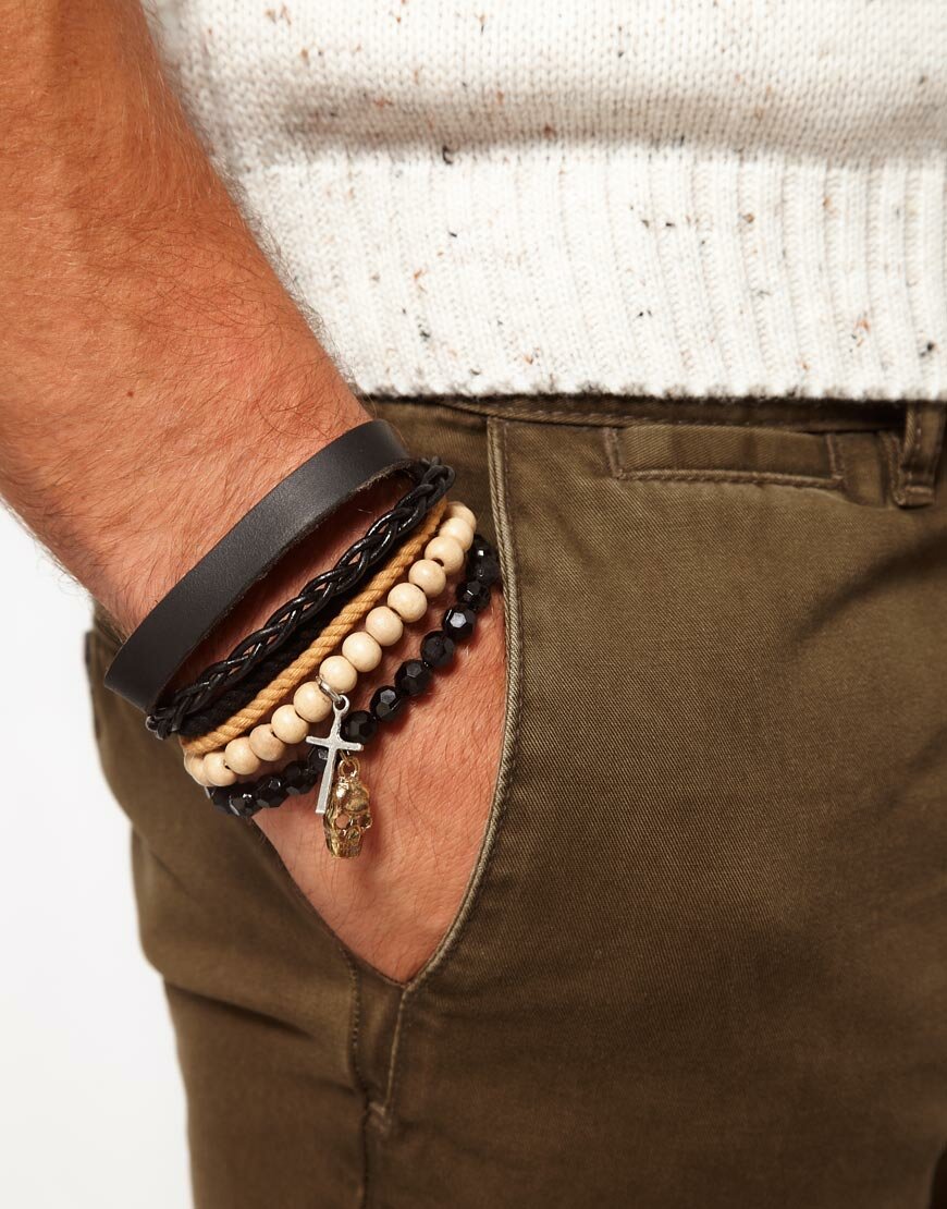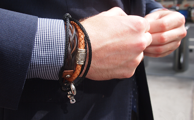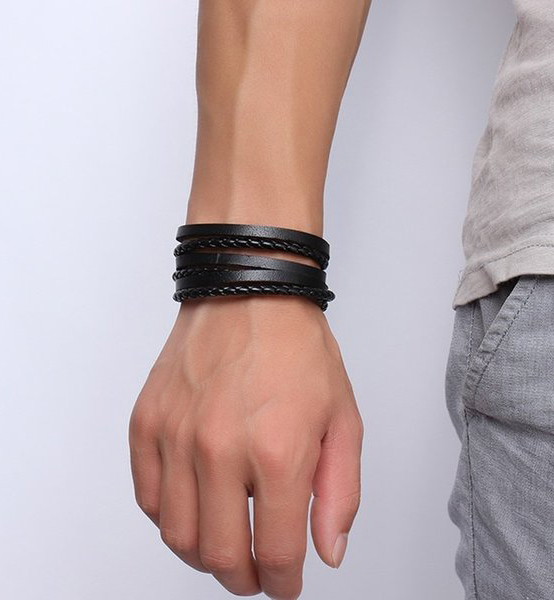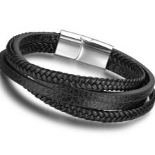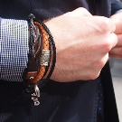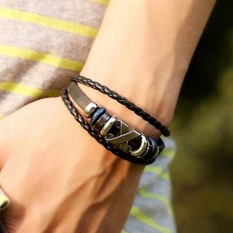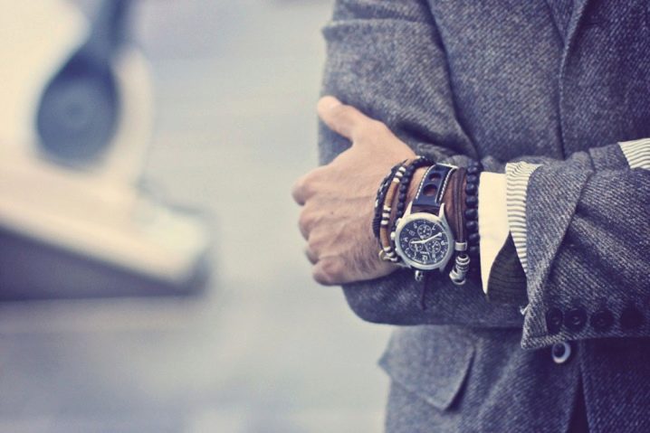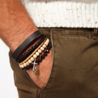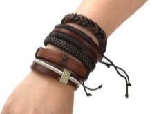 Lorsque vous choisissez un bracelet, vous devez vous concentrer sur le style de vie et le style d'un homme. Diverses "tresses" et options de perles conviennent à la plupart des looks sportifs décontractés. Ils apporteront de la dynamique à l'image et deviendront un accessoire moderne. Cependant, dans les styles professionnels et formels, cela peut sembler déplacé. Les bracelets de largeur moyenne en cuir rugueux comme les bracelets de montre leur conviennent. À propos, ils sont également combinés avec des montres, l'essentiel est que les accessoires soient fabriqués dans le même style. Couleurs - nuances noires, gris foncé, brunes.