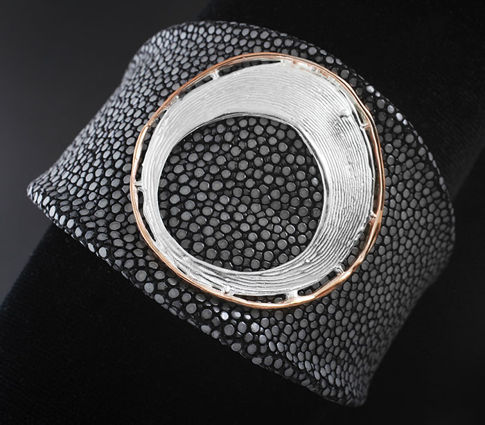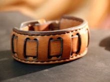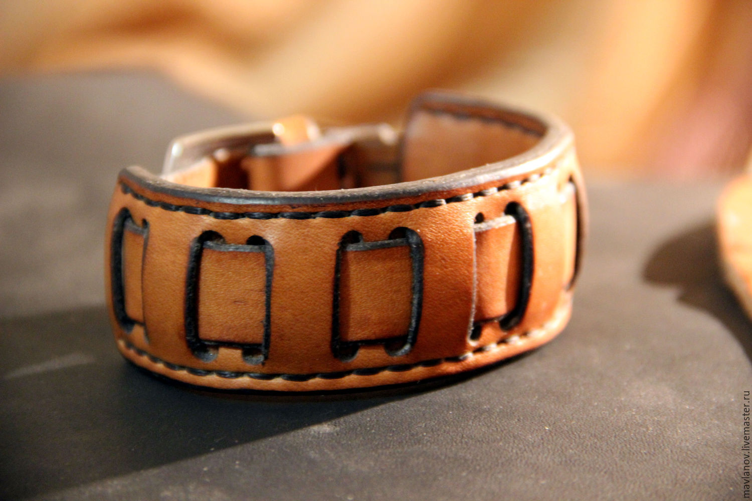 Les bracelets larges ne nécessitent généralement pas de décoration "exceptionnelle" - parfois des coutures d'une teinte contrastée suffisent... Les bracelets gravés ne sont pas très courants et généralement fabriqués sur commande. Il s'agit de gaufrage sur la peau sous forme de symboles, de lettres, de formes géométriques, d'images d'animaux, d'oiseaux.