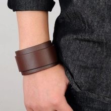 Les produits larges sont généralement faits de cuir brut naturel - une certaine race de taureaux (Angus), des types spécialement traités - des tapis de selle et de la croûte. L'une des dernières tendances est les bracelets en cuir de galuchat. Il est poncé, traité, de sorte que le produit fini brille magnifiquement. Pour les amateurs d'exotisme, les produits sont fabriqués à partir de peaux de pythons, de lézards, de crocodiles.