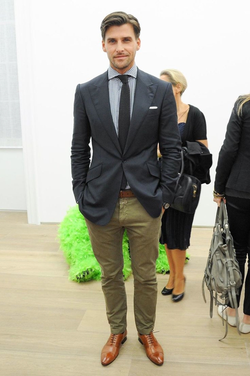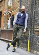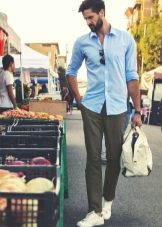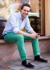 Si les pantalons ne sont pas achetés pour aller au bureau, mais pour un usage quotidien, le choix est ici beaucoup plus large, car leur couleur et leur style peuvent être plus variés. Verts, marsala, aubergine, violet foncé, moutarde - et ce ne sont pas toutes des options pour des tons acceptables. Les jambes peuvent être assez larges ou effilées vers le bas, des poches sont possibles au-dessus et à mortaise, il est possible qu'il y ait une ceinture ou même l'absence de harnais pour cela. Le choix ici dépend uniquement des goûts et préférences personnels d'un homme en particulier et de son style. L'essentiel est de se sentir à l'aise dans les choses, afin que rien ne se confond et ne soit combiné avec l'ensemble de l'image.