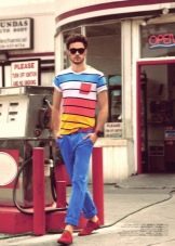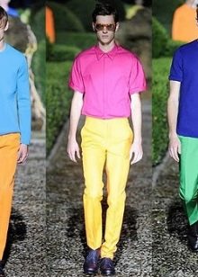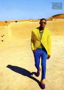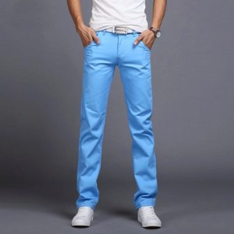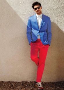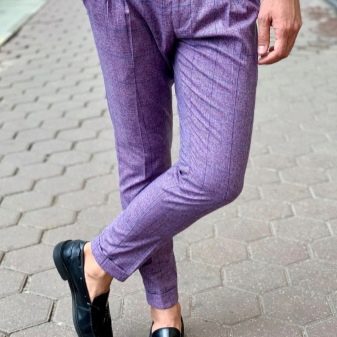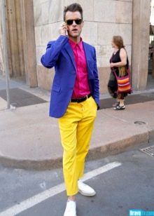 Les pantalons aux couleurs vives sont une excellente option pour les hommes joyeux, actifs et charismatiques. De plus, ils peuvent être non seulement bleus ou lilas, mais aussi avoir un imprimé ou des rayures.