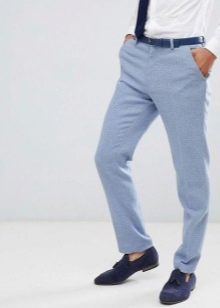 - Bleu. Toutes les nuances claires de bleu peuvent être classées comme classiques. De tels pantalons, soumis à une coupe stricte et à la présence d'une flèche, sont tout à fait appropriés dans un bureau ou tout autre endroit où un code vestimentaire officiel est adopté. Les jeans légers bleu clair ou turquoise sont une excellente option pour un look décontracté pour l'été et l'automne chaud.