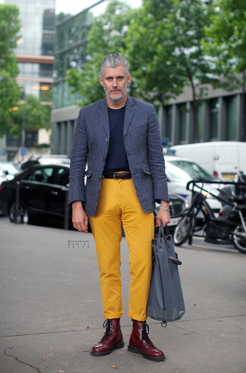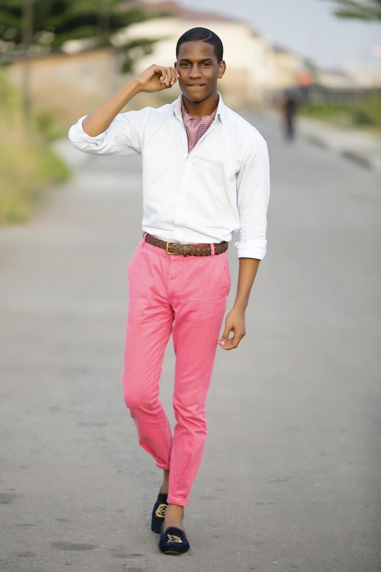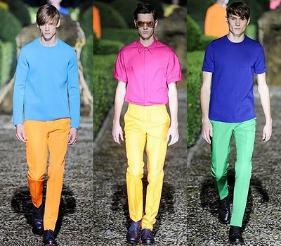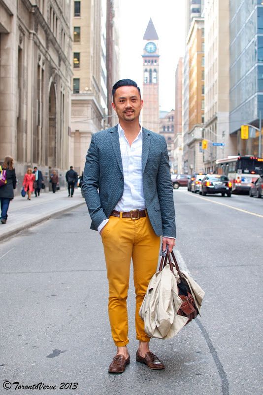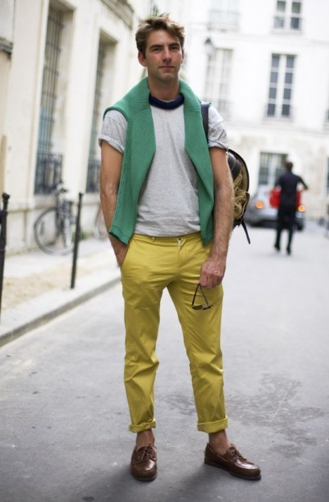 Si l'image peut être libre et qu'il n'y a pas de cadre dans le style, vous êtes libre de porter ce que vous voulez, et les pantalons des couleurs les plus vives ne font pas exception ici.