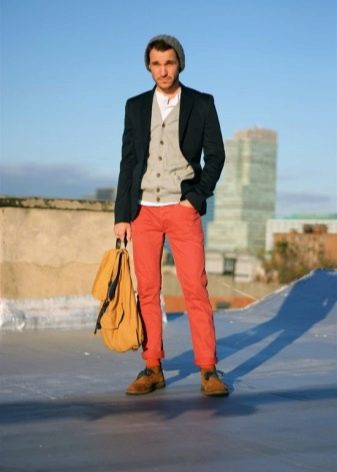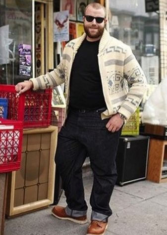 Pour un homme de grande taille qui ne souffre pas d'excès de poids et qui souhaite paraître visuellement plus bas, un pantalon avec une tresse, sans flèches, est parfait. Les petits plis au niveau de la ceinture ne sont pas un problème - ils ajoutent du volume à la silhouette. Il est recommandé pour une personne complète de choisir un pantalon très large avec une taille légèrement basse. Les poches ne sont pas très grandes - il suffit de les mettre dans votre portefeuille.