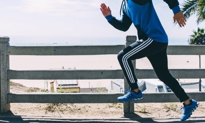 Le type d'activité déterminera également la composition du tissu du pantalon de sport. Options optimales pour la marche ou le jogging: pendant la saison chaude, les collants sont en coton, les froids en laine.