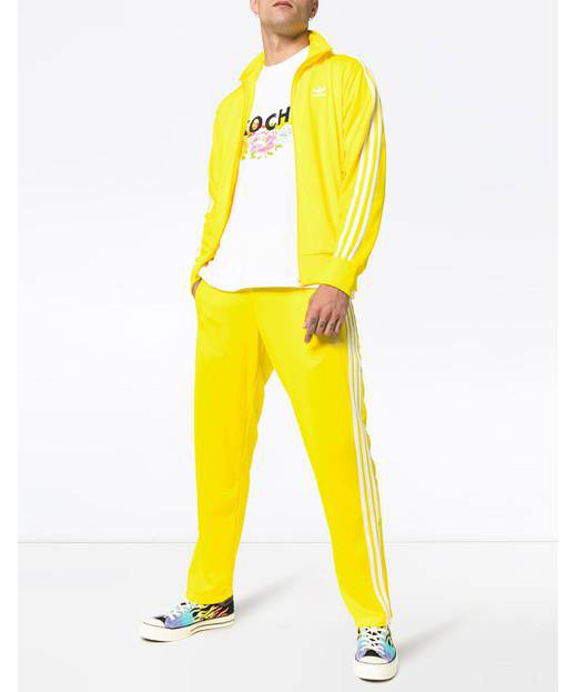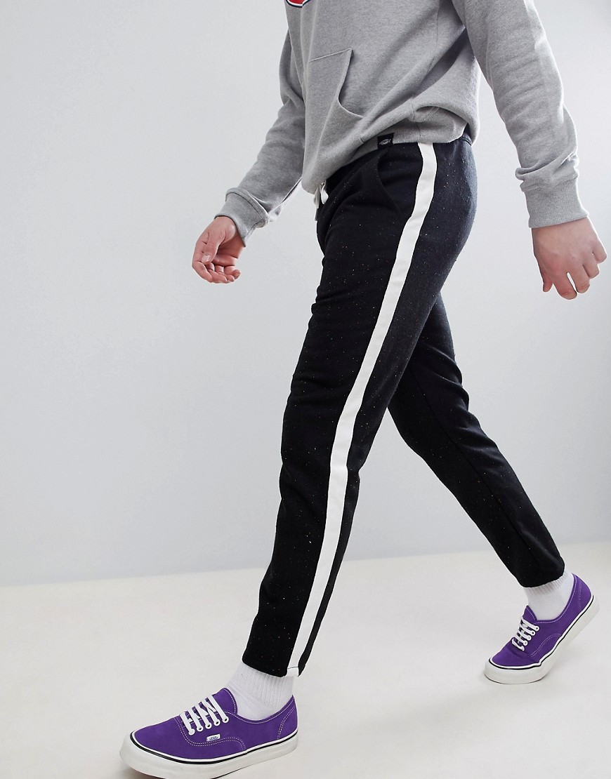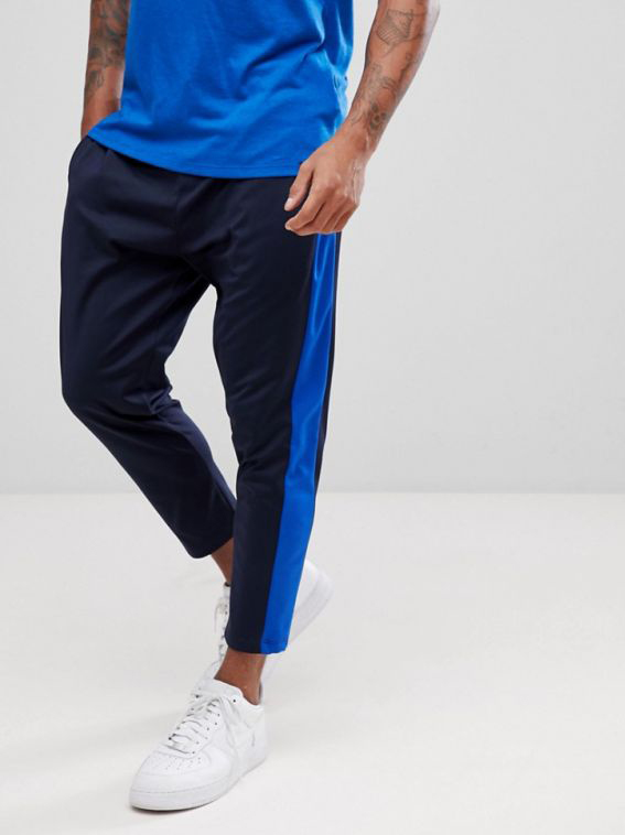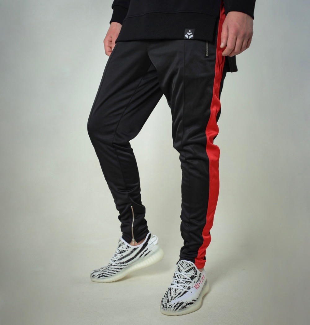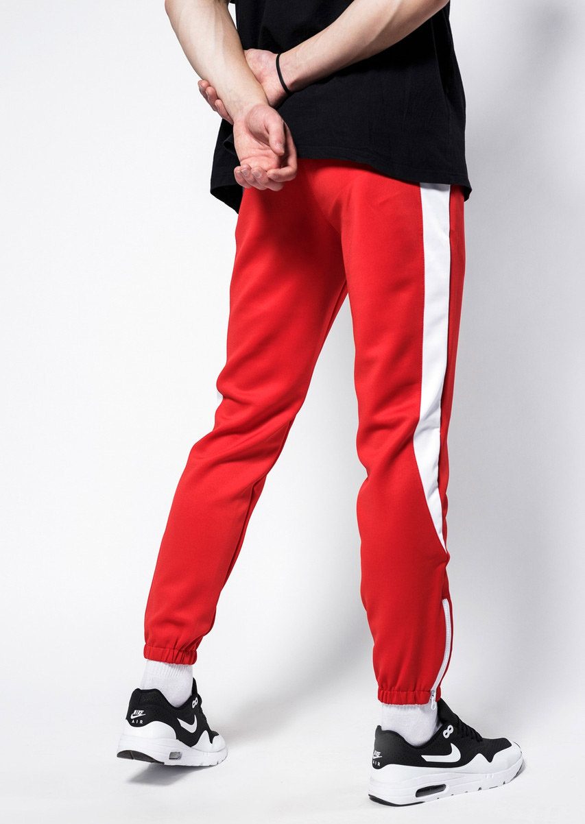 - Les pantalons de survêtement à rayures soulignent parfaitement la grande croissance des hommes.