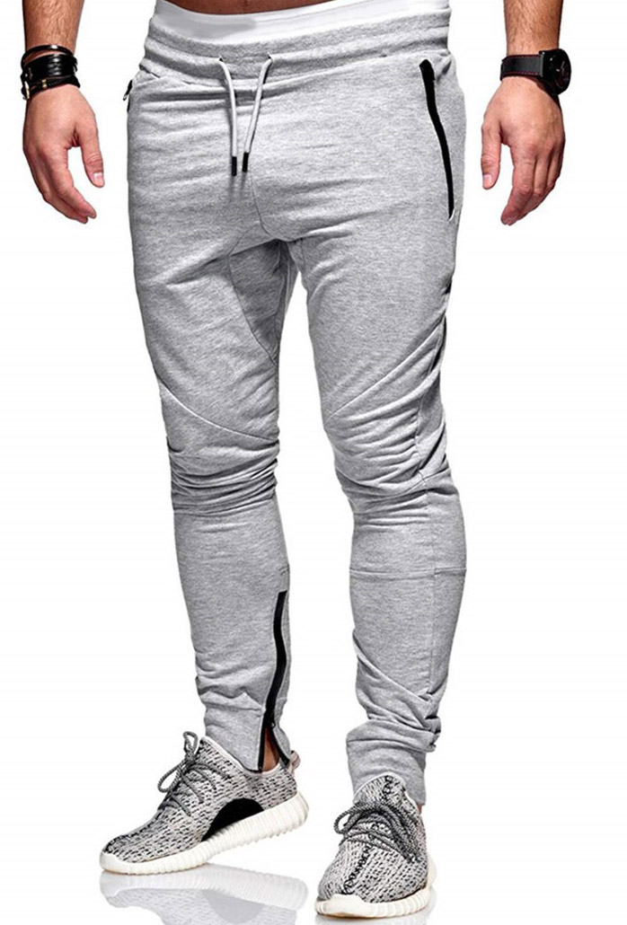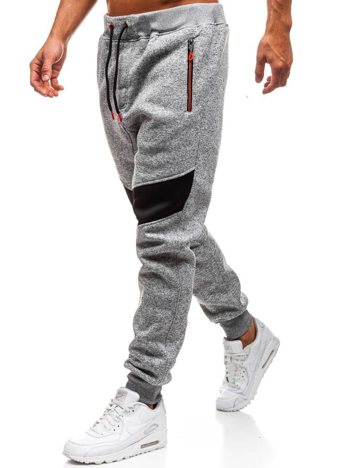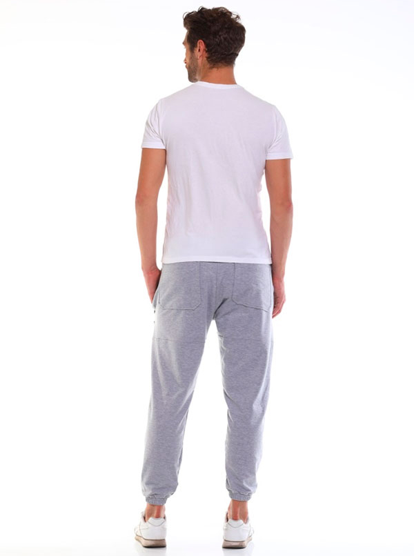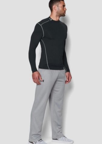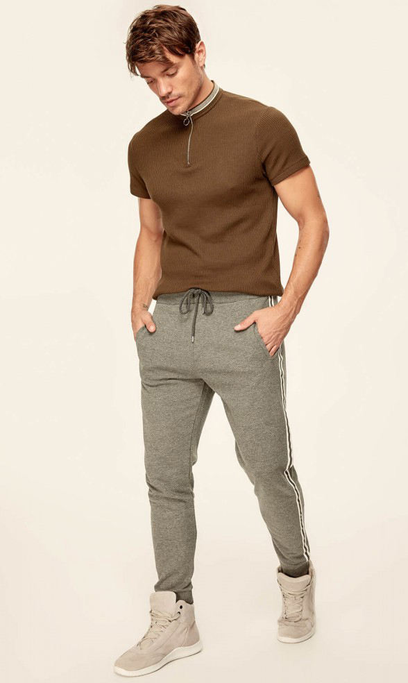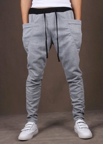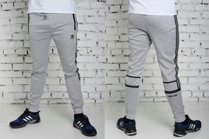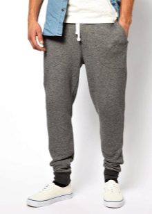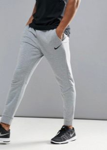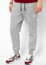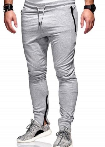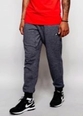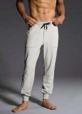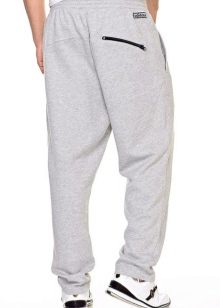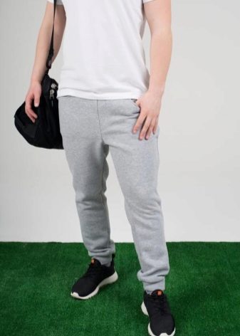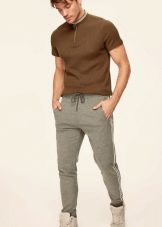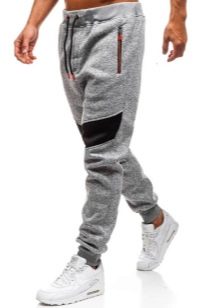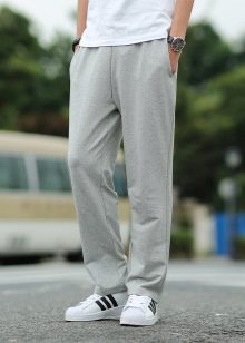 Les pantalons de survêtement gris, quelle que soit la teinte, sont élégants et efficaces. En eux, il est beaucoup plus facile pour les hommes de supporter la chaleur estivale. Seulement pour cacher les taches de saleté sur le pantalon ne fonctionnera pas. Cette couleur est idéale pour les hommes au physique élancé.