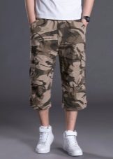 Dans une plus large mesure, ce type de pantalons de survêtement fait référence aux culottes. En eux, vous pouvez visiter le gymnase, vous entraîner sur des simulateurs en plein air pendant la saison chaude. Les pantalons courts peuvent être serrés ou amples. Ces derniers sont choisis beaucoup plus souvent. Cependant, non seulement la coupe du pantalon décrit attire l'attention des gars, mais aussi les couleurs. La couleur camouflage est très demandée.