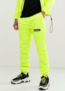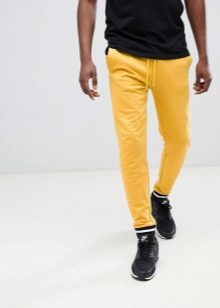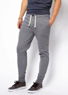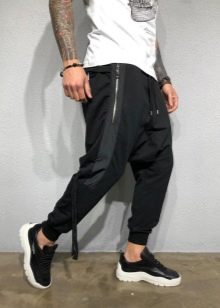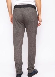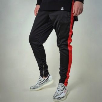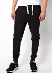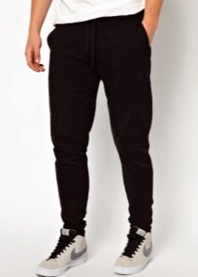 L'une des tendances de la mode très demandées par le sexe fort. Les joggeurs sont basés sur les pantalons les plus courants. Seuls les modèles modernes correspondent légèrement à la silhouette. Les jambes sont droites, l'élastique en bas permet de serrer étroitement vos chevilles.