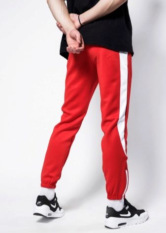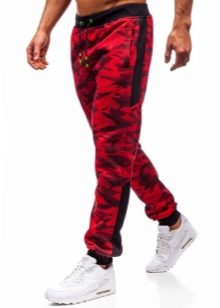 Le choix d'une couleur de pantalon aussi vive est effectué par des hommes courageux qui aiment être à l'honneur. Le rouge avec toutes ses nuances se suffit à lui-même, pas de décor supplémentaire, ils n'ont pas besoin d'impressions.