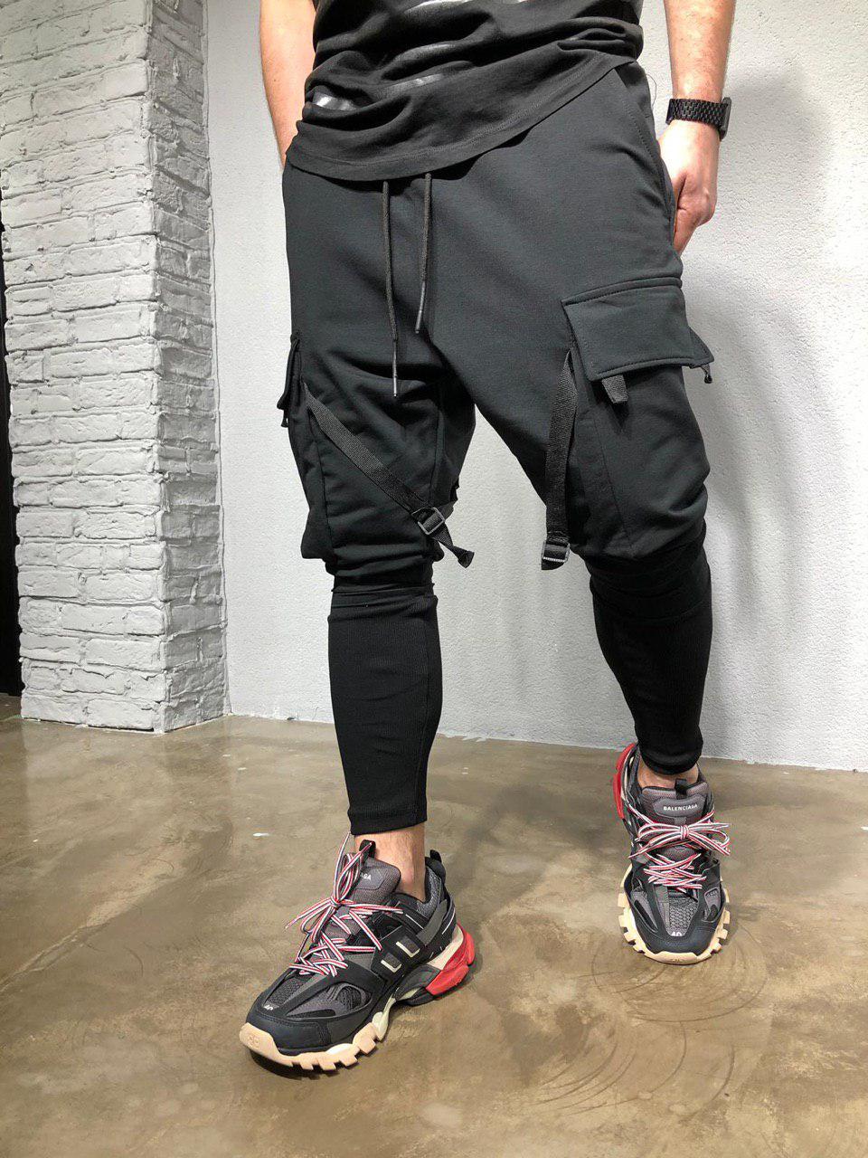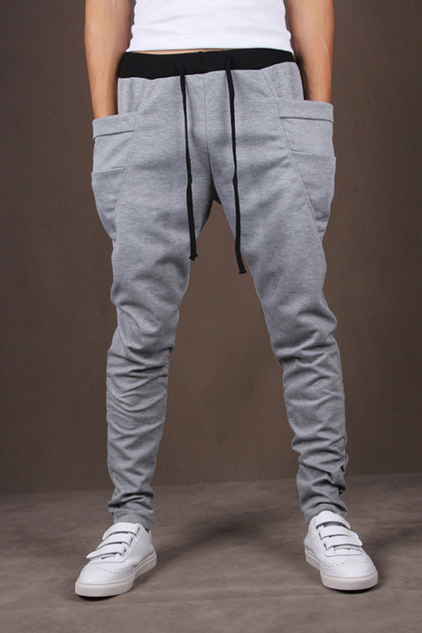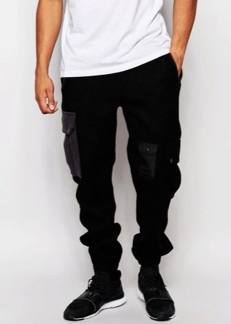 - Les modèles d'entraînement avec poches latérales ne doivent pas s'adapter autour de vos jambes. Cependant, beaucoup d'espace ne devrait pas non plus être présent. Sinon, la beauté de la silhouette masculine ne sera pas visible.