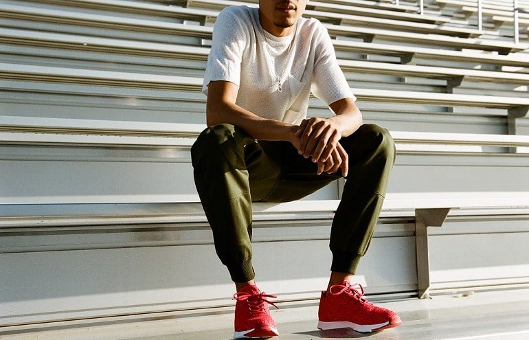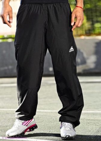 Les pantalons de survêtement en polyester doivent être portés par temps frais. Dans la chaleur estivale, un homme ressentira un inconfort.