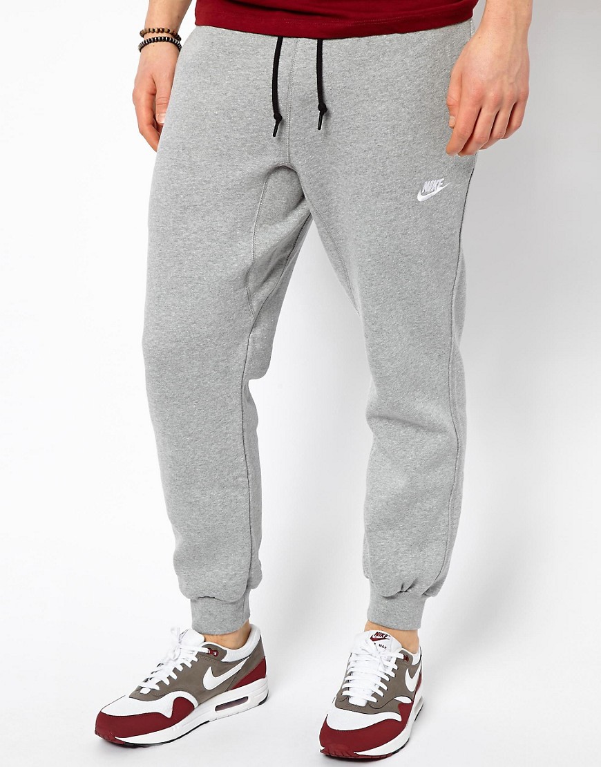 - Les joggeurs à la mode ressemblent à des sous-vêtements. Ils semblent droits, bien que les jambes se rétrécissent légèrement vers le bas.