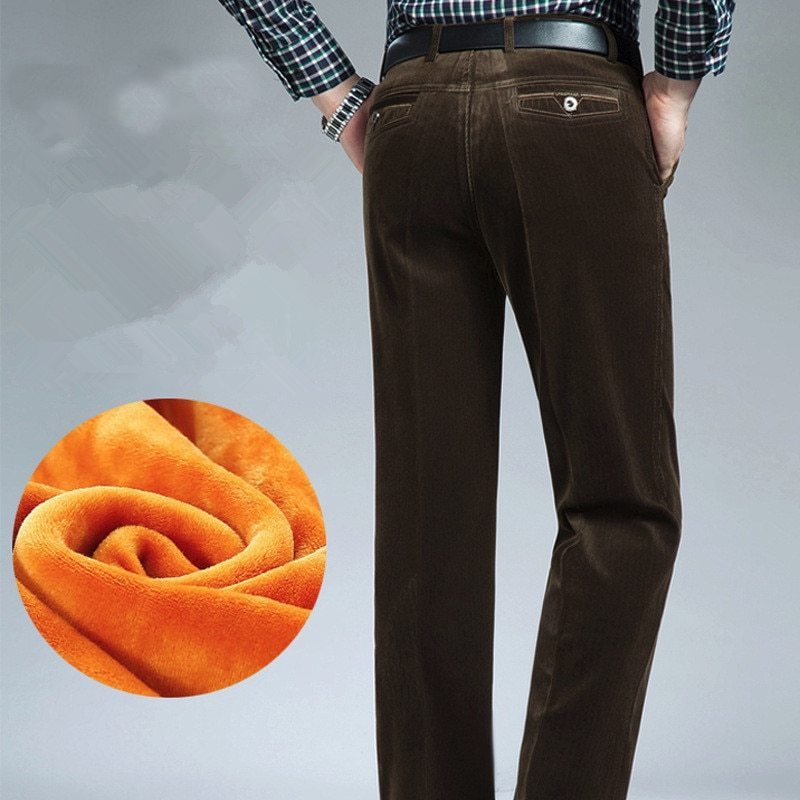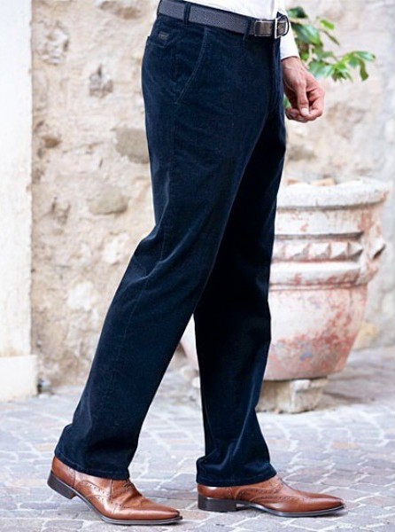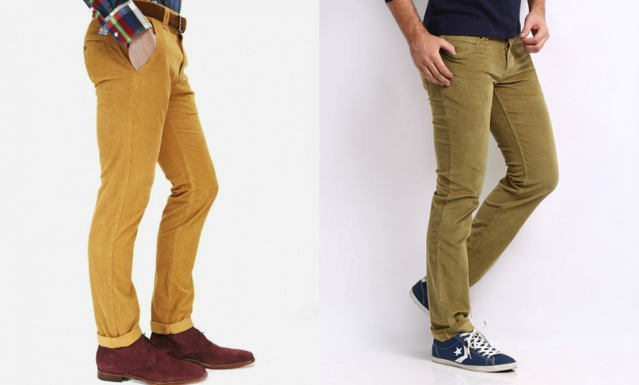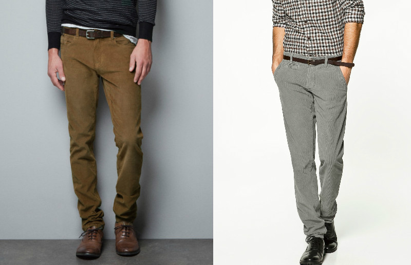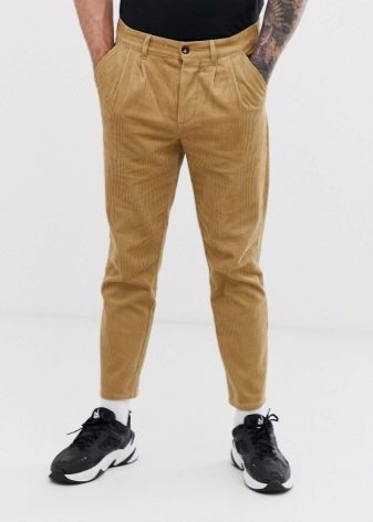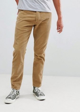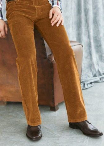 Le matériau optimal pour les pantalons pour hommes aujourd'hui est le micro-velours côtelé avec une côte fine jusqu'à 1,5 mm.