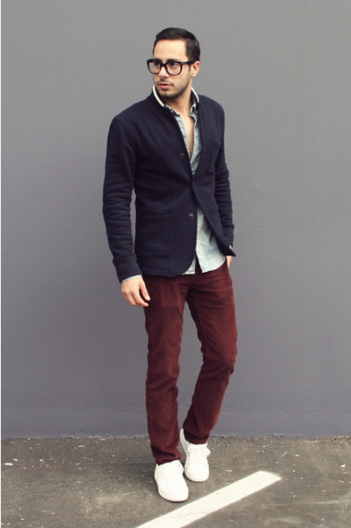 Si un homme ne gravite pas vers les classiques primitifs, il choisit un pantalon rouge, un amoureux extravagant du choquant - bordeaux.