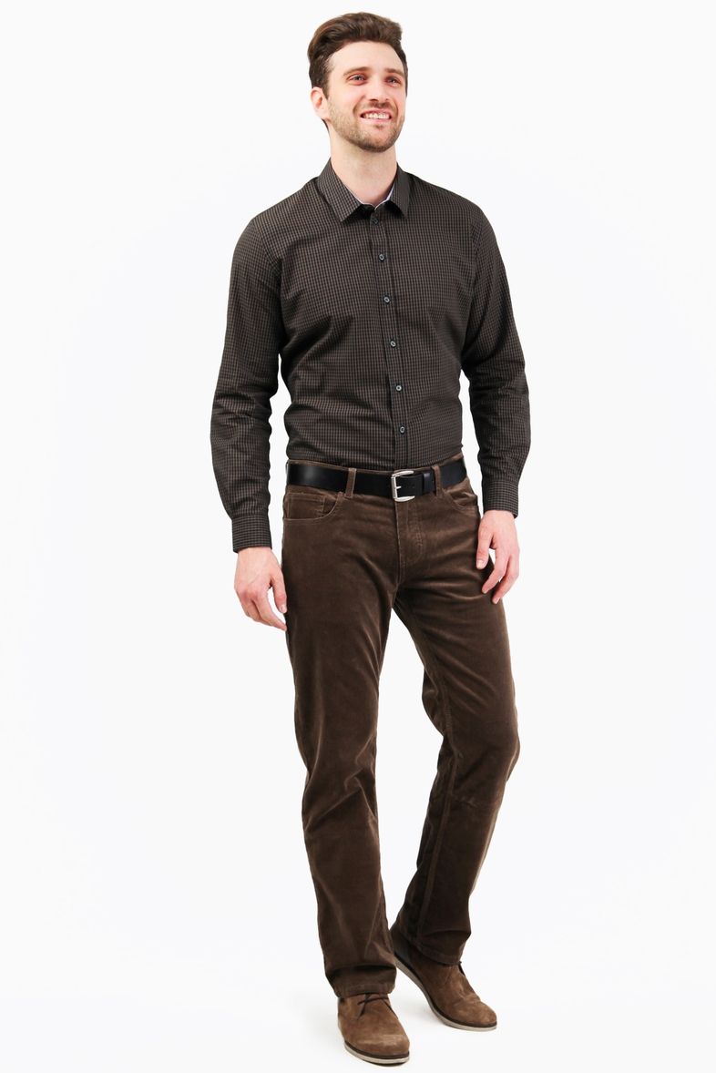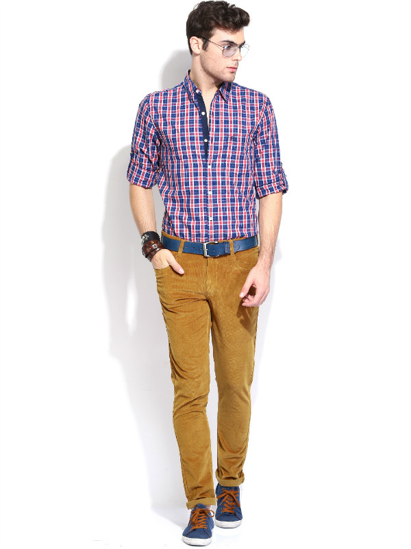 Le velours côtelé a fière allure en tandem avec une chemise à carreaux. Sa palette de couleurs peut être assez audacieuse ou, au contraire, neutre.