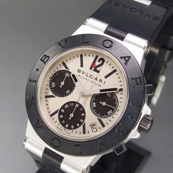 - Deuxièmement, vous devez faire attention à dimensions du boîtier... Ici, la marque propose un choix assez large - de 22 à 54 mm. C'est pourquoi les montres Bvlgari sont très souvent achetées par des personnes ayant de petits poignets. La plupart des modèles se caractérisent par la présence d'une large lunette, qui assure la massivité et la brutalité des produits. De plus, il permet même aux plus grands modèles d'avoir l'air harmonieux.