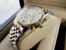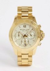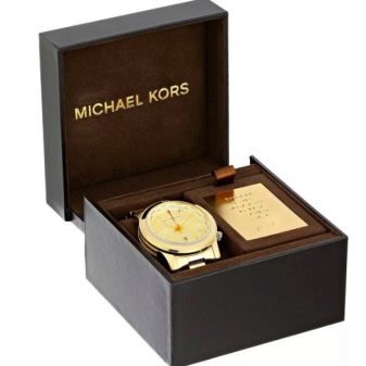 Ces heures sont terminées dans la conception classique de Michael Kors. Le boîtier doré met magnifiquement en valeur le cadran noir. A la demande de l'utilisateur, il est possible de paramétrer un format horaire de 12 ou 24 heures. Pour remonter la montre, vous pouvez utiliser une couronne spécialement conçue et dotée d'un revêtement protecteur. Le bracelet, qui fait partie intégrante du produit, est équipé d'une boucle déployante. Le mécanisme principal de la montre est le quartz. L'indicateur de protection contre l'eau et l'humidité est de 100WR. Le fabricant offre une garantie de 2 ans. La valeur marchande de la montre est de 28 000 roubles.