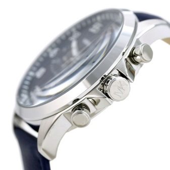 Ce modèle équipé d'un chronographe, et le design extérieur de la montre est plus élégant et moderne par rapport aux deux premiers modèles... Les couleurs principales sont le bleu et l'argent. Pour la commodité de l'utilisateur, une couronne spéciale avec un revêtement protecteur est fournie dans la conception. Le bracelet de la montre est en cuir véritable, il durera donc assez longtemps et conservera un aspect présentable. Le matériau principal du boîtier extérieur est l'acier durable. Le coût du produit commence à 12 000 roubles.