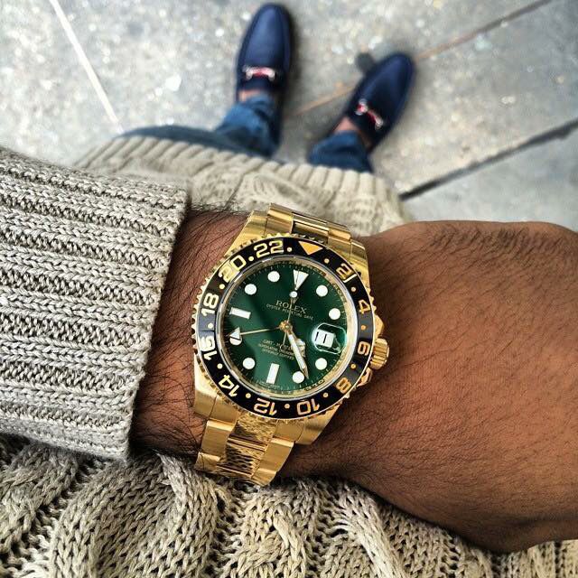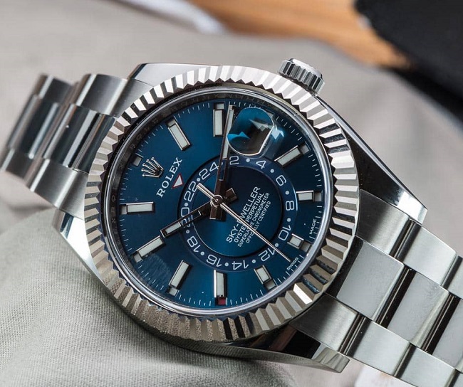 - GMT-Master II. Ces montres de luxe sont fabriquées en or 18 carats avec du laiton, de l'argent, du palladium et du platine ajoutés. Le produit est équipé d'un beau cadran bleu, qui reflète bien le style général de la célèbre marque. Tous les marqueurs du cadran sont en or 18 carats, ils ne peuvent donc pas s'assombrir au fil des ans. Un bracelet Oyster de haute qualité est fourni, élégant et très durable.
