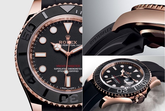 - Yacht-Master 42. Nouveau modèle élégant pour 2019. La pièce dorée chic est réalisée dans un style nautique. Équipé d'un cadran noir, qui offre une excellente lisibilité de tous les indicateurs nécessaires, et « soutient » également le style général de l'élégant accessoire. Le bracelet est une bonne alternative aux bracelets standard et est fabriqué à partir d'un alliage de titane plat et d'une plaque métallique en nickel.