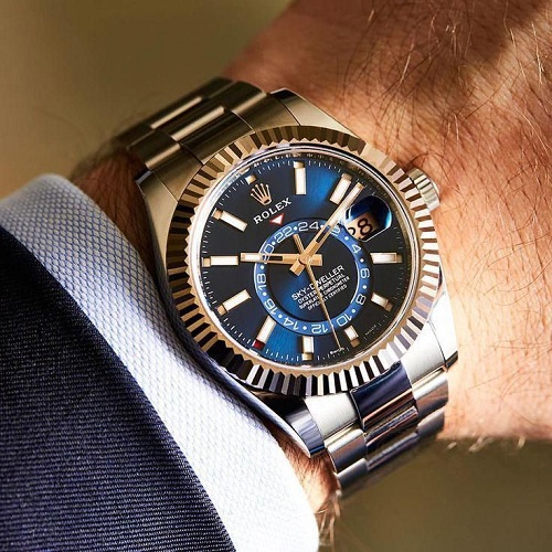 - Ciel-Dweller... Une superbe montre en or rose. Couleur du cadran - rhodium foncé. L'accessoire coûteux comprend un bracelet Oyster fiable et magnifique avec des maillons en acier massif. Il existe un mouvement de précision de première classe 9001 à remontage automatique. Il y a un deuxième fuseau horaire. Et aussi une très belle montre Sky-Dweller est produite dans une riche couleur jaune, qui s'intègre parfaitement dans les looks de nombreux hommes.
