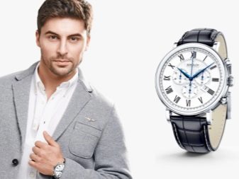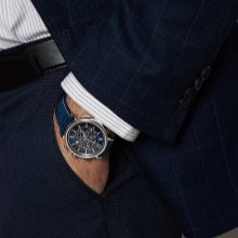 - Représentativité... Des accessoires coûteux avec de l'or et de l'argent vont bien avec un costume cher. Un tel attribut doit être sélectionné très soigneusement afin que le bracelet corresponde à la couleur du pantalon et que l'apparence de la montre souligne le statut élevé du porteur.