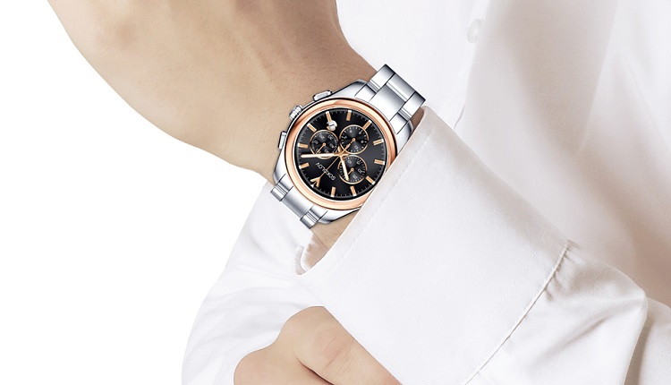 - Vie courante. Lorsqu'un homme préfère la fonctionnalité et la fiabilité, il choisit des modèles parfaitement combinés avec les vêtements de tous les jours. La montre contient un chronographe et un calendrier.