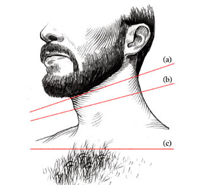 - es ist wichtig das nicht zu vergessen jeder Mensch hat seine eigenen Merkmale des Haarwuchses, dies gilt auch für das Gesicht - Sie müssen Ihren Bart nicht "nach Vorlage" anpassen; oft hat die Trennung von Hals und Kinn keine ausgeprägten Grenzen, der Mann irrt sich und kann nicht entscheiden, wo er sich rasieren soll;