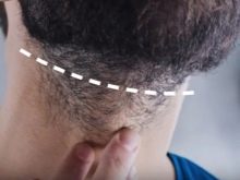 - dann können Sie den Aufsatz entfernen, die Stoppeln am Hals schneiden und von unten nach oben zum Unterkiefer bewegen.