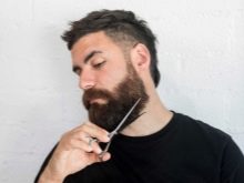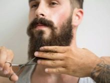 - ein langer Bart muss zuerst mit einer Schere mit nach oben gebogenen Spitzen gekürzt werden, ohne zu viel Länge zu nehmen - alles hängt vom Endergebnis ab, möglicherweise müssen Sie die Haare später glätten;