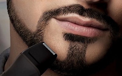 - es ist besser, einen kurzen, spärlichen Bart mit einem Trimmer zu trimmen. Mit diesem Gerät ist es einfach, einen stilvollen Look zu erzielen, der leicht unrasiert bleibt und sich gut mit seltener Vegetation verbindet. Scheren für diese Form sind nicht geeignet;