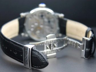 - Verschluss mit Schutzmechanismus. Eine Variation des Schmetterlingsdesigns. Für zusätzlichen Schutz wurde ein aufklappbares Klappenschloss hinzugefügt. Es ist zu beachten, dass eine solche Schließe aufgrund der Größe für Personen mit dünnen Handgelenken nicht geeignet ist.