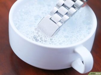 Auf den ersten Blick erfordert ein Metallarmband keine Aufmerksamkeit. Aber Kontakt mit Staub und Salz aus Schweiß kann zu Korrosion führen... In diesem Fall können Sie nicht nur das Aussehen der Sache verlieren, sondern auch Allergien ausgesetzt sein. Um dieses Szenario zu vermeiden, ist es notwendig, das Armband jeden Monat mit einer Zahnbürste und warmem Seifenwasser abzuwischen. Es ist auch notwendig, die Uhr an einem Ort mit guter Belüftung aufzubewahren.