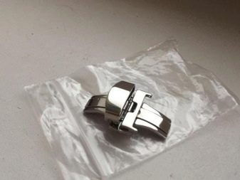 - Schnalle. Eine ziemlich häufige Art von Verschluss. Einfache und zuverlässige Druckgusskonstruktion. Geeignet für jede Art von Handgelenk und kann als Dekoration verwendet werden. Kann nicht mit Metall- oder Keramikarmbändern verwendet werden.