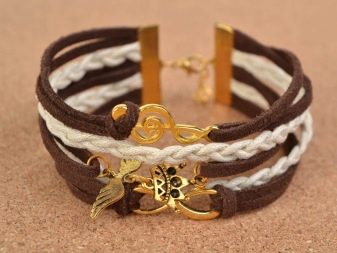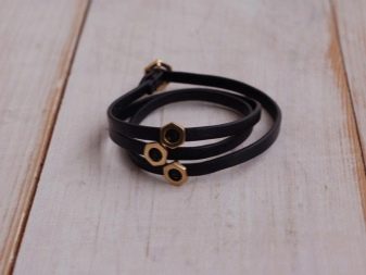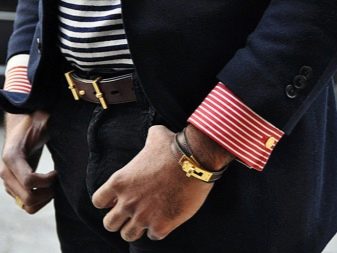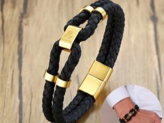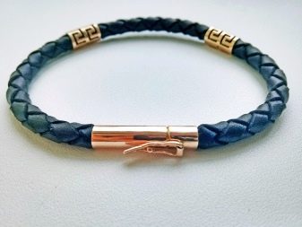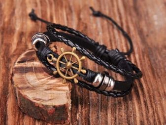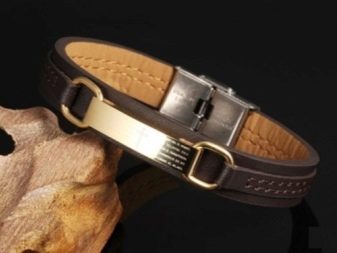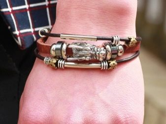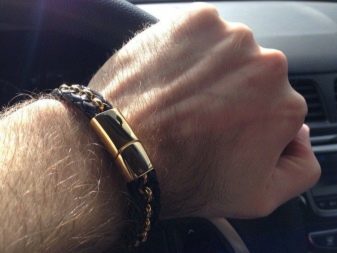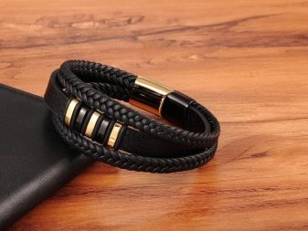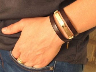 Eine weitere beliebte Option sind Lederarmbänder für Männer, die aus mehreren separaten Schnüren bestehen. Oft werden sie mit Hilfe eines großen oder mittelgroßen Goldschmucks miteinander verbunden. Sie finden auch Modelle solcher Armbänder mit massiven Goldfedern oder miteinander verbundenen Metallplatten. Unabhängig davon sind die Modelle zu erwähnen, bei denen es sich um Miniaturkopien von Gürteln mit verschiedenen Schnallen handelt.