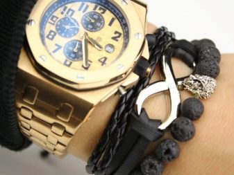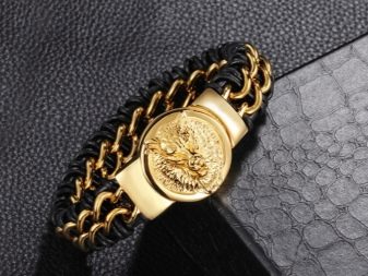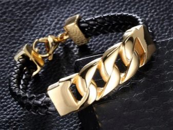 Diese Accessoires für Männer haben neben Goldschmuck oft auch Teile aus anderen Metallen sowie Dornen und Perlen. Echtes Leder sieht am besten mit poliertem Dekor aus. Diese Armbänder gelten als universell und eignen sich daher sowohl für Teenager als auch für erwachsene Männer.