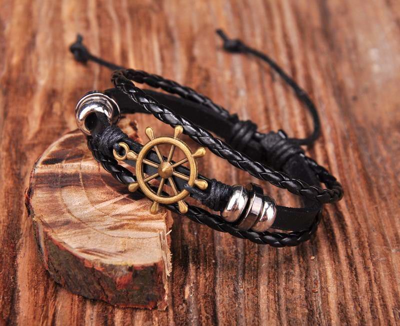 Derzeit können Sie in den Geschäften eine ziemlich große Auswahl an Herrenlederarmbändern mit Gold sehen. Wir sollten auch gewebte Modelle hervorheben. Sie bestehen aus mehreren dünnen Lederstreifen, die eng miteinander verwoben sind. Solche Produkte werden oft mit Gold-, Silberperlen unterschiedlicher Größe oder kleinen Ornamenten eines nautischen Themas (Anker, Lenkrad) oder anderer Art (Schädel, Dornen) verziert. Diese Armbänder gibt es in einer Vielzahl von Farben, aber die gebräuchlichsten sind Marineblau, Dunkelgrün, Schwarz und Braun.