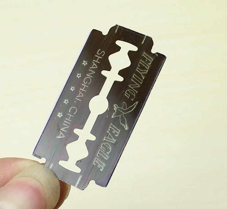 - Denim verwenden - der Stoff sollte auf einer ebenen Fläche ausgebreitet und mit einem Rasierer 20-30 Mal in entgegengesetzter Richtung zur Rasur darüber geführt werden.