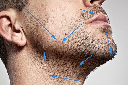 - Stoppeln mit einer Einwegmaschine entfernen. Während des Eingriffs sollte der Rasierer am Griff gehalten werden, während der Neigungswinkel der Klinge etwa 30 Grad betragen sollte. Sie müssen sich von oben nach unten entlang des Haaransatzes rasieren. Wenn die Maschine mit 1 Klinge ausgestattet ist, reichen 2-3 Durchgänge in einem Bereich aus, um eine perfekte Hautglätte zu erzielen. Üben Sie beim Rasieren nicht zu viel Druck auf den Rasierer aus, die Bewegungen sollten glatt sein.