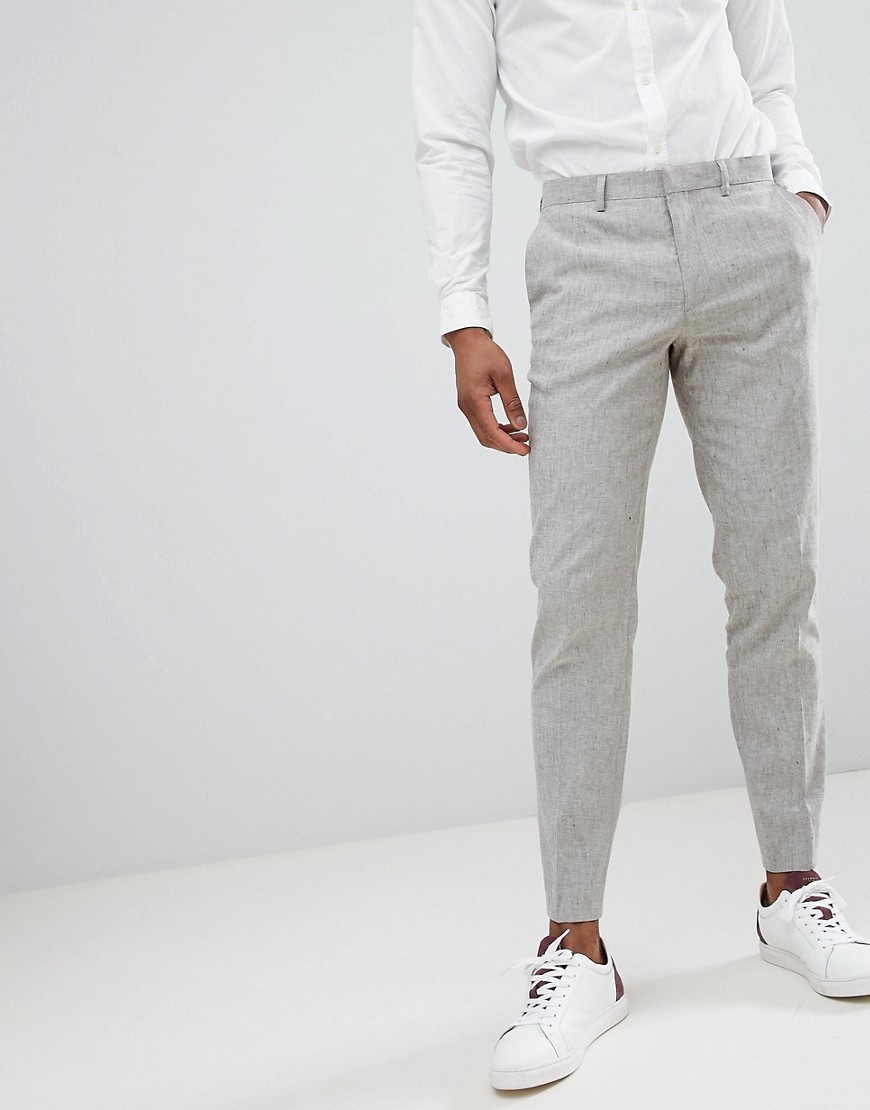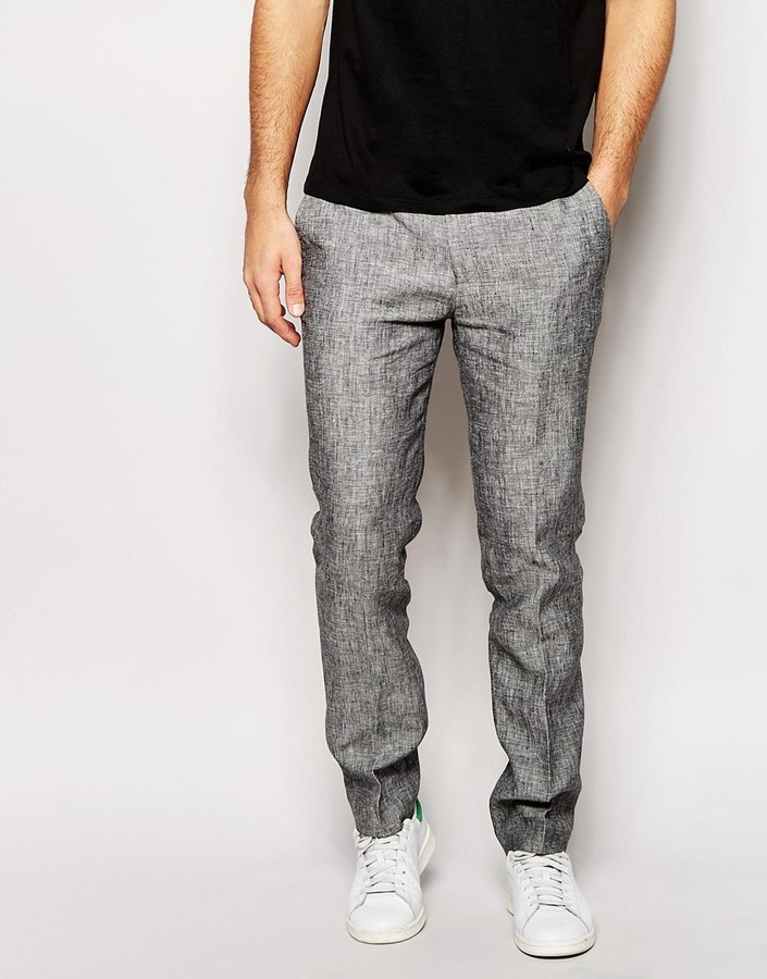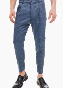 Zulaufende Herrenhosen werden auch als „slim“ bezeichnet, manchmal werden sie mit Skinny identifiziert. aber Skinny ist nur eine der Varianten von Tapered-Hosen, die sich möglichst gut an den Körper anschmiegen, und schmal - an der Hüfte schmal, gerade zu den Waden und zum Knöchel hin schmal zulaufend... Letztere gehören zur Damengarderobe, aber modernere Designer nehmen sie in die Bilder für Männer auf. Wir können sagen, dass Tapered-Hosen ein breiteres Konzept sind, das alle Variationen von enganliegenden und enganliegenden Stilen umfasst.