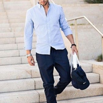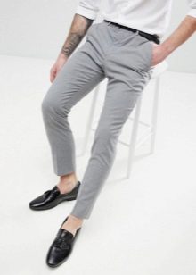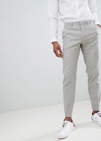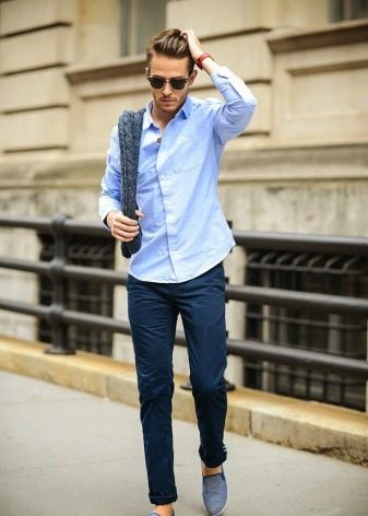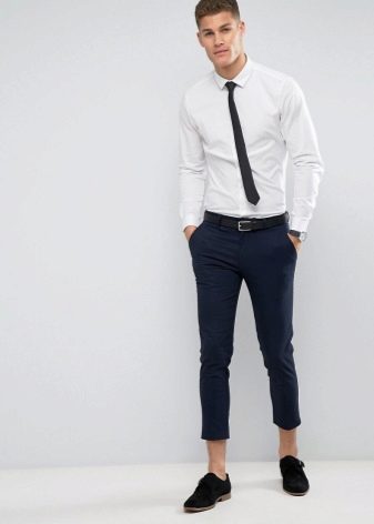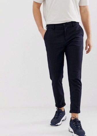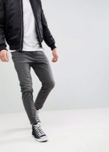 Die Stilistik solcher Modelle kann komplett variiert werden – von Klassik bis Sport. Die am häufigsten getragenen schmalen Hosen sind Männer, die Casual, Streetstyle und Casual bevorzugen. In dieser Gruppe sehen Sie beliebte Chinos, Cargo, Jeans. Die Hauptsache ist, alle Details des Ensembles richtig auszuwählen, Farben harmonisch zu kombinieren und die Besonderheiten der Addition sowie das Alter zu berücksichtigen.